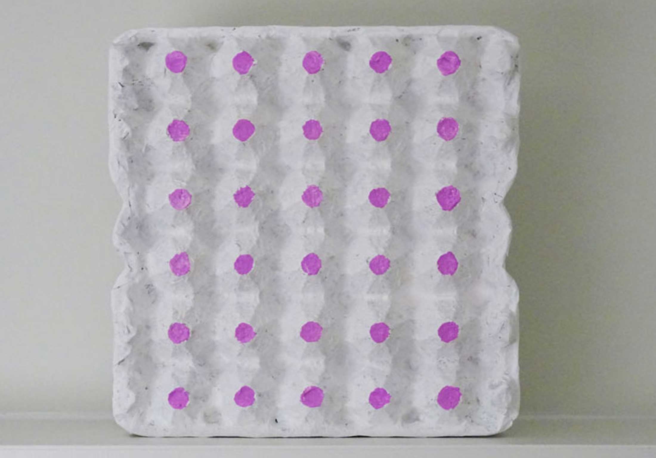 untitled (30 Pink Dots) 2016, vangerven|vanrijnberk, egg carton, glue, paper, acrylic paints 29 x 30 x 8 cm